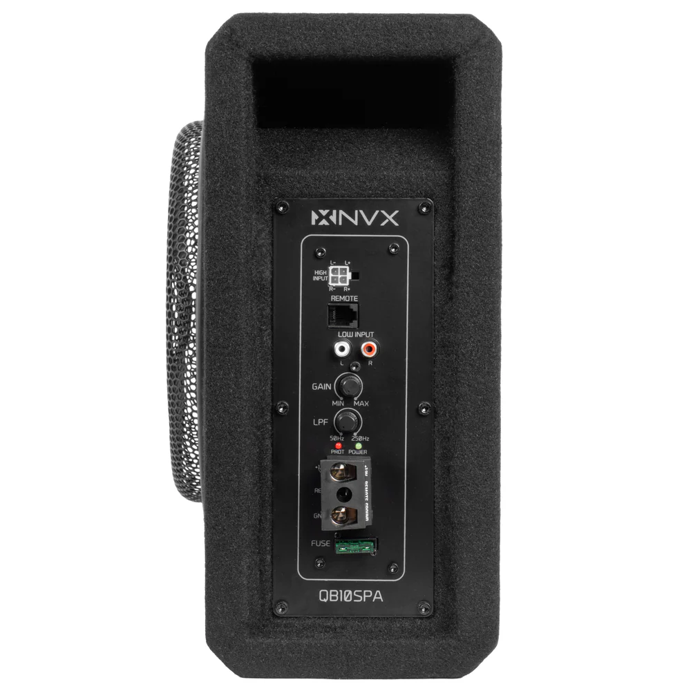 QB10SPA 1200W Peak (350W RMS) Single 10" Amplified Ported Loaded Subwoofer Enclosure with Remote Bass Knob and Amplifier Wiring Kit